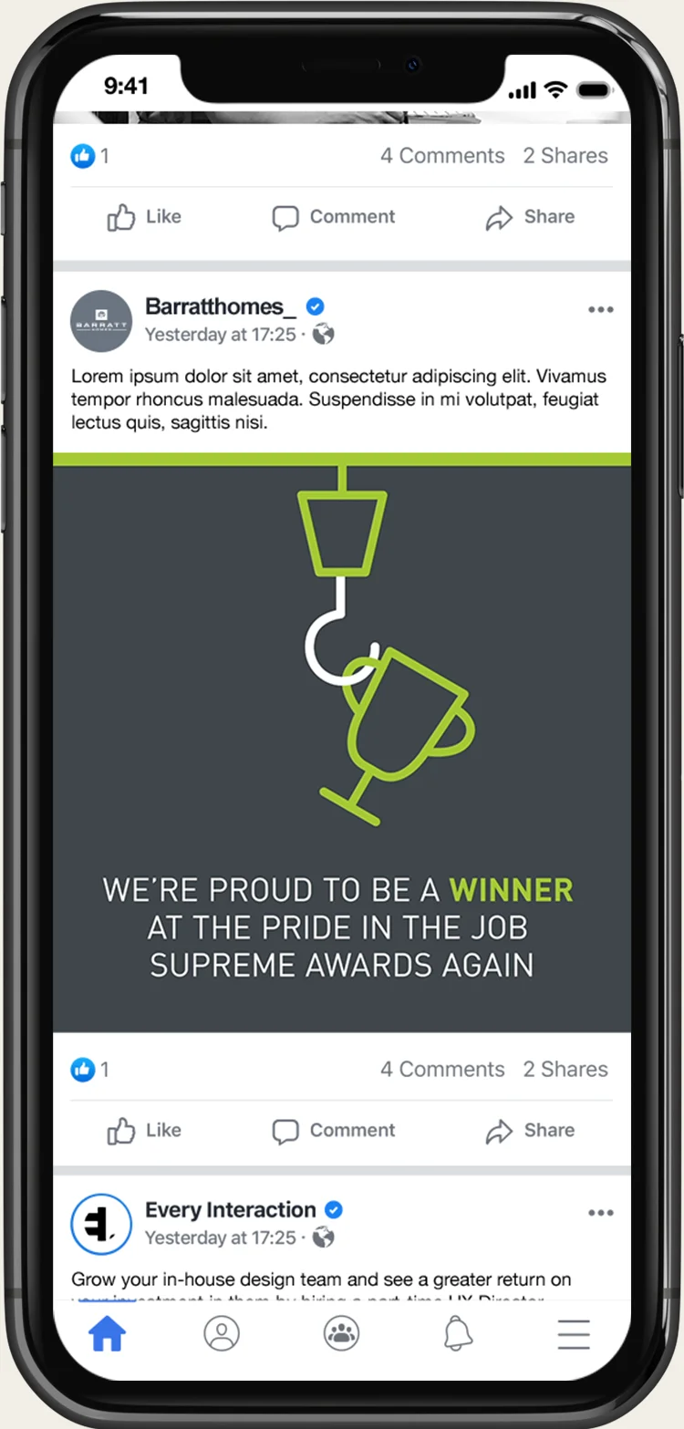 Animated posts for Barratt Homes, Barratt London and David Wilson.